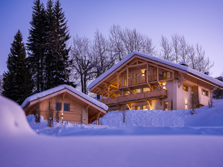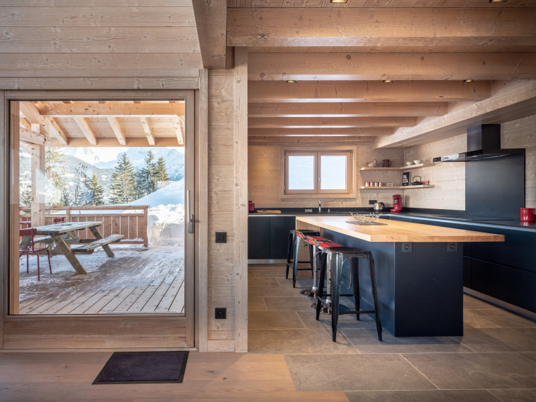 loue grand chalet familial avec terrasse, jacuzzi et vues sur le Mont Blanc , les Aravis et la chaine des Fiz.